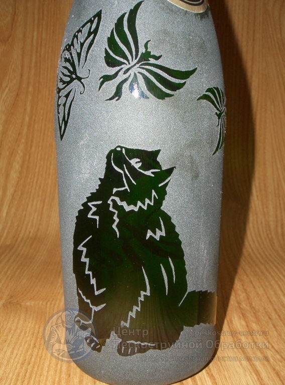 Нанесение пескоструйного рисунка на шампанском